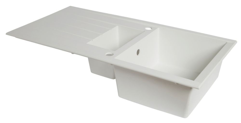 1.5 Bowl Plastic Resin Kitchen Sink Drainer White Reversible