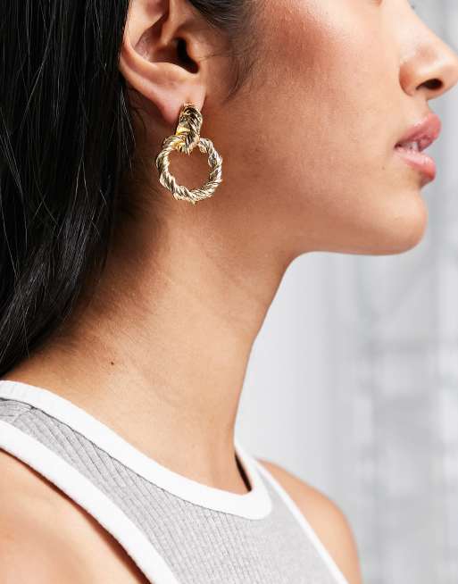 DesignB London twisted circle drop earrings in gold tone ASOS
