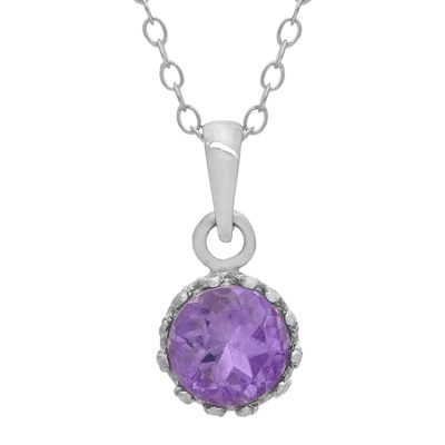 Genuine Amethyst Sterling Silver Pendant Necklace Color Purple