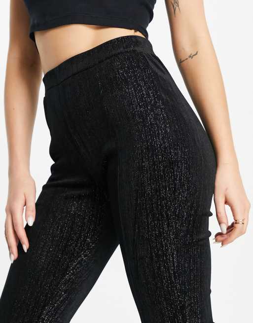 Vila glitter leggings with split front in black ASOS