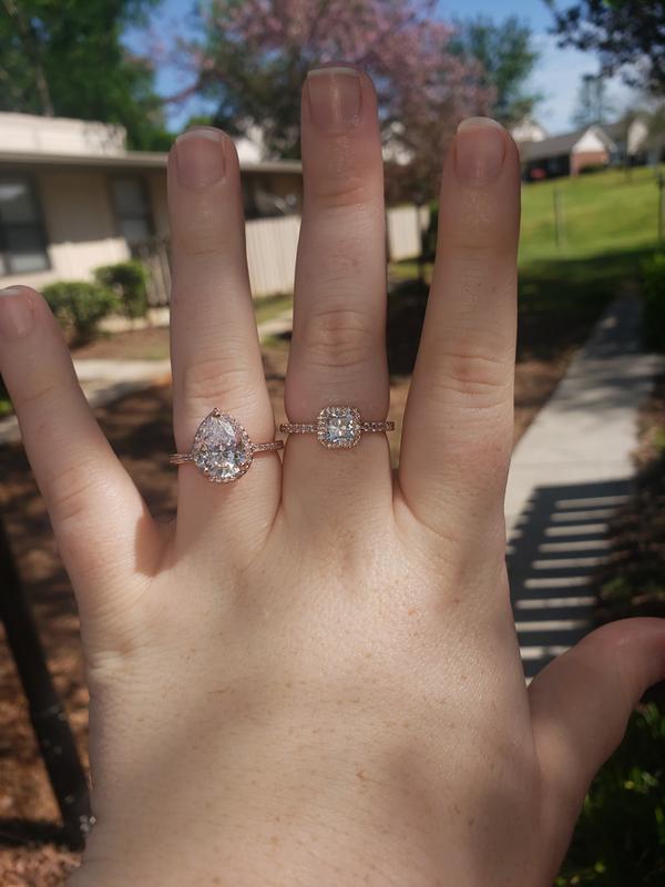 Amazon Pandora Square Sparkle Halo Ring Rose Gold Ring for
