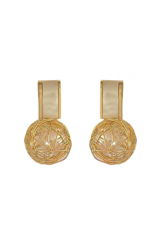 Buy AYESHA Quirky Gold Toned Bar And Pearl Drop Earrings