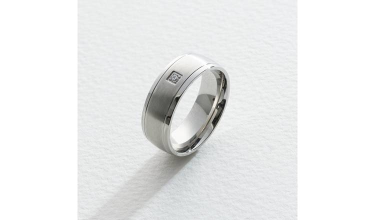 Buy Revere Men s Stainless Steel Cubic Zirconia Ring Size R Argos