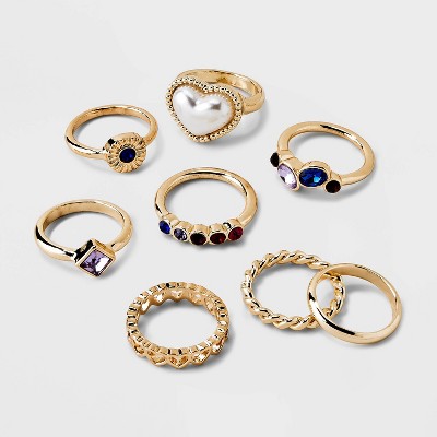 Target womens rings 2025, Simulated Pearl Heart And Stone Ring Set 8pc Wild Fable Gold 2025
