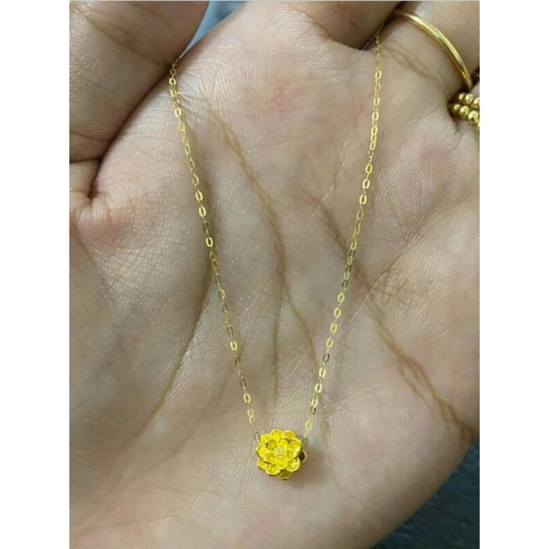 24k Gold Lotus Flower Pendant 18k Chain Necklace SET pawnable