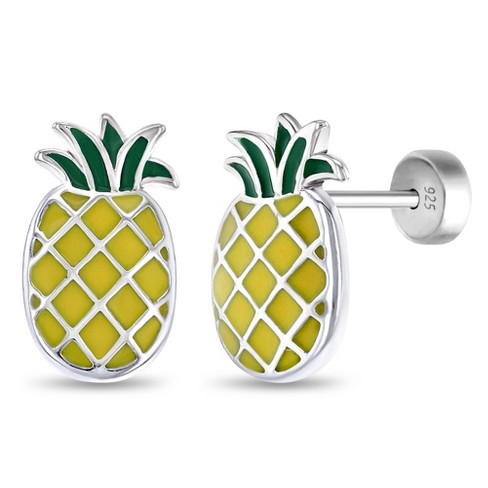 Girls Lucky Pineapple Push Back Sterling Silver Earrings In