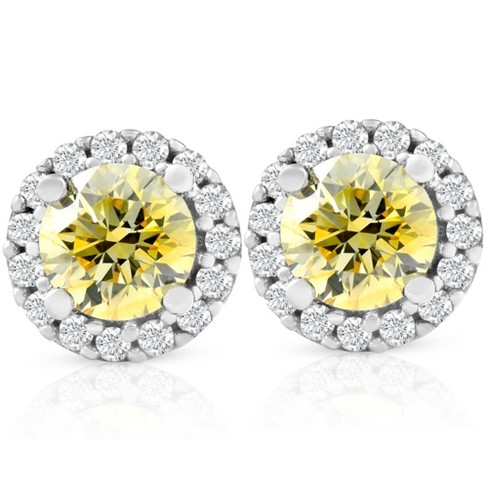 Canary yellow stud earrings 2025, Pompeii3 1 2 Ct Halo Fancy Canary Yellow Lab Created Diamond Studs 2025