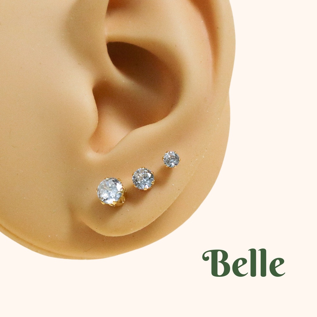 Belle Stainless Steel Basic Ball Stone Stud Earrings Gold