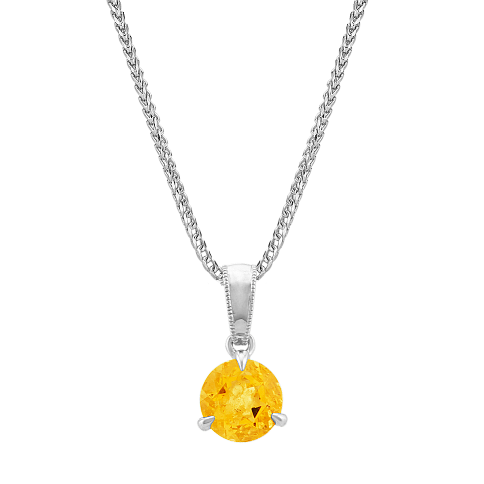Vibrant Citrine Solitaire Necklace in 14k White Gold The Gem