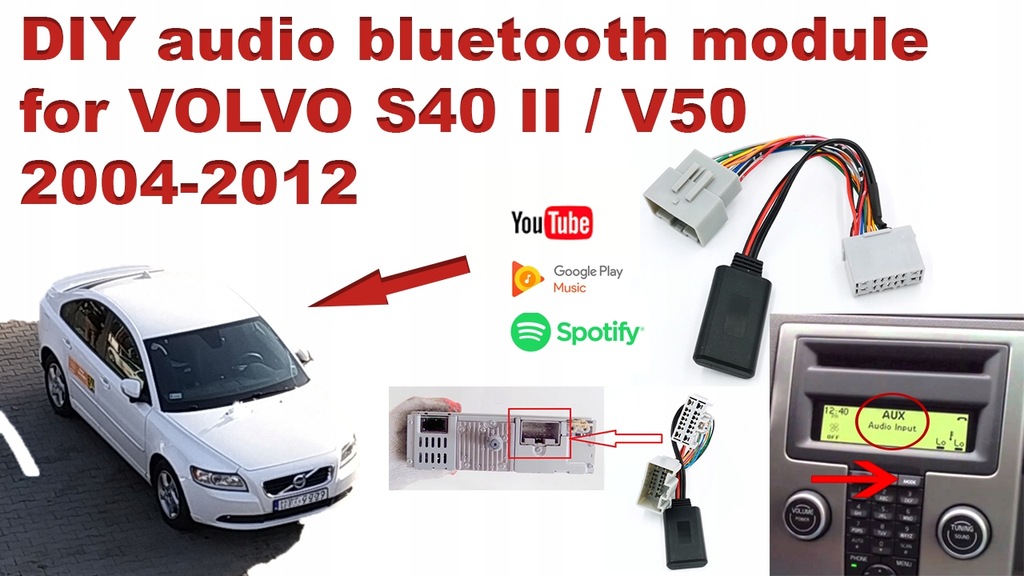 Bluetooth volvo s40 v50 xc60 moduł adapter audio 2025, Fits Volvo XC70 S60 C30 C70 S70 S80 V40 S40 Bluetooth Adapter AUX 2025
