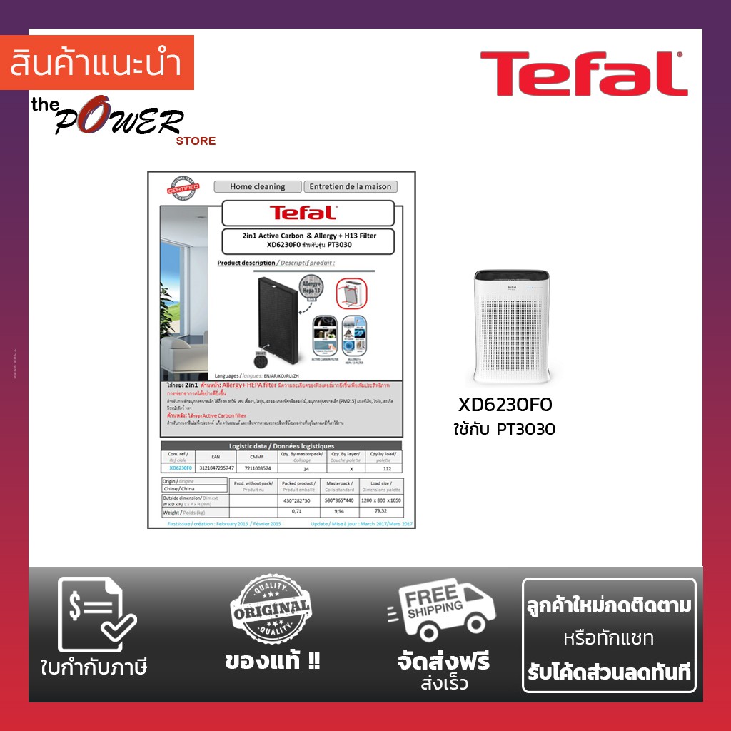 Tefal PT3030 XD6230F0 HEPA filter PM 2.5 carbon