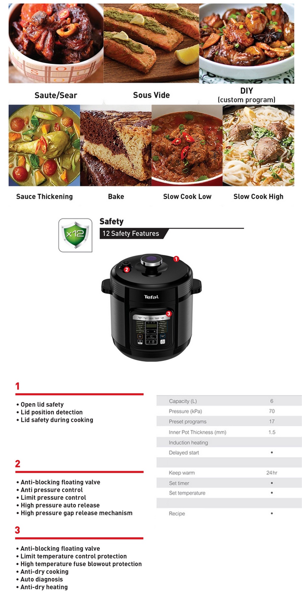 Tefal 6L Home Chef Smart Multi Cooker Pressure Cooker CY601D