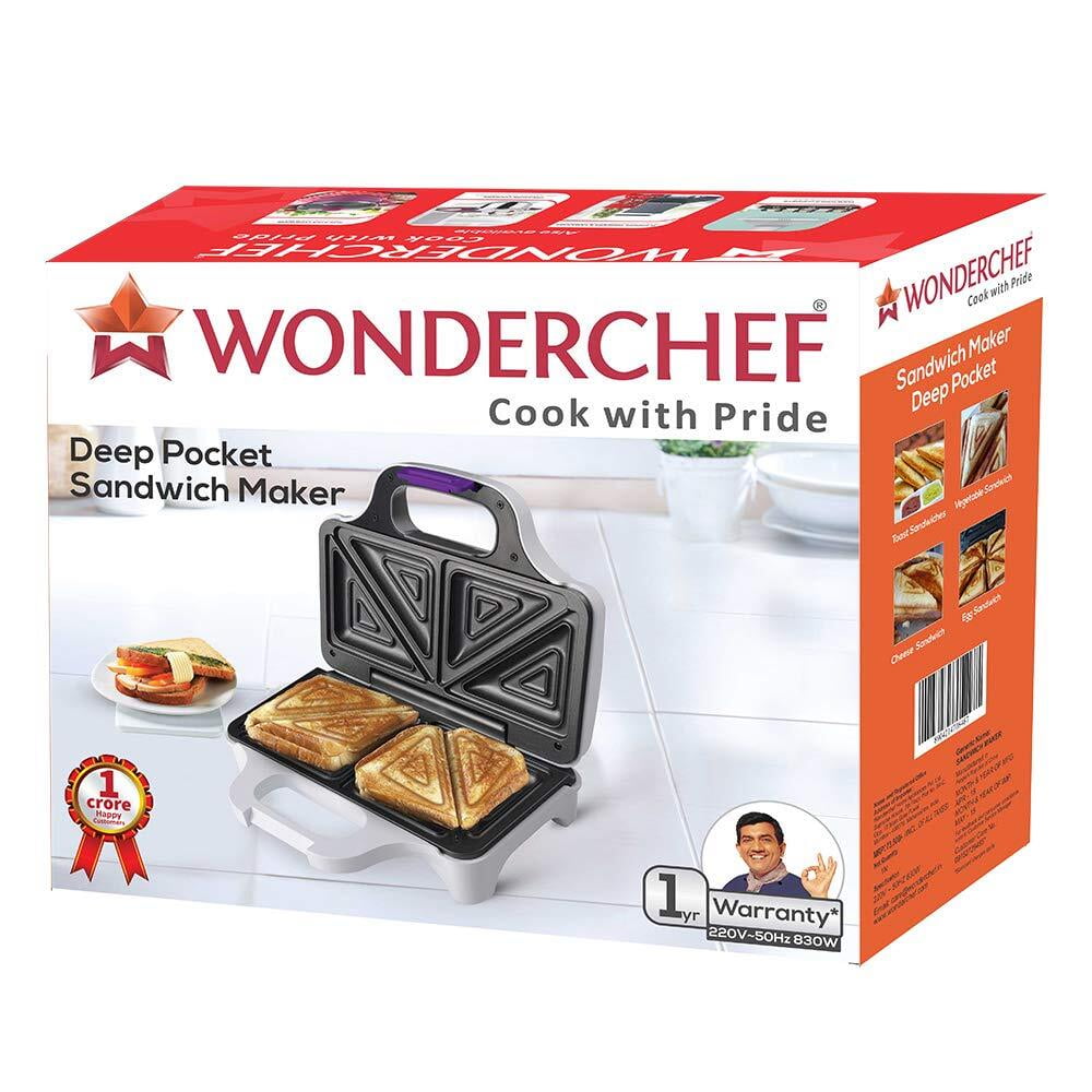 Wonderchef Deep Pocket Grill Sandwich Maker 830W White