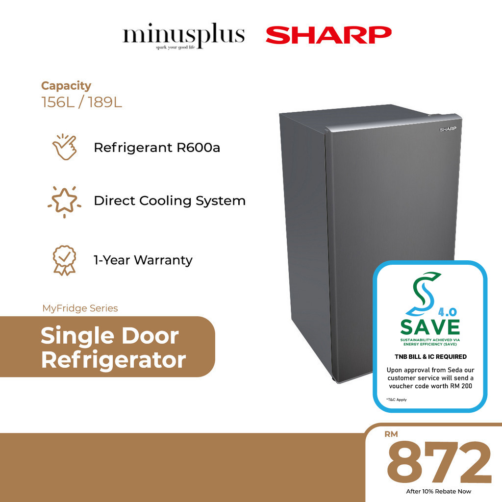 Sharp r600a 2025, Save 4.0 Sharp Refrigerant R600a Single Door Fridge Refrigerator 156L 189L MyFridge Series SJD190MS SJD220MS 2025