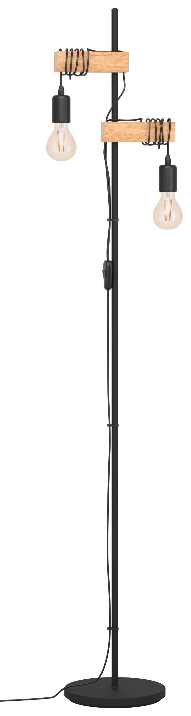 Eglo Townshend Black Natural Wood Floor Lamp Wickes