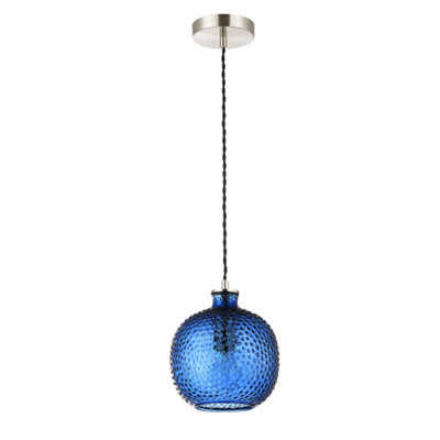 Modern Ceiling Light with Black Fabric Cable and Navy Blue Glass