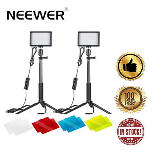 NEEWER 2 Pack Tabletop Dimmable 5600K USB LED Video Lighting with Color Filters and Tripod Stand