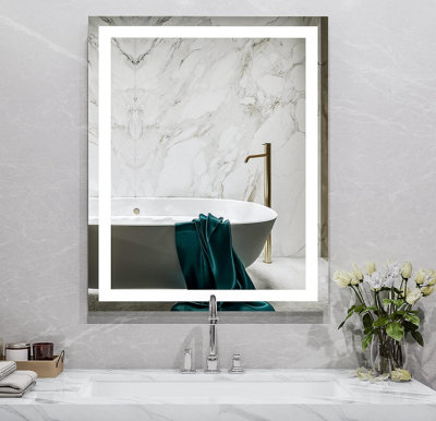 Bathroom Mirror with LED Lights Anti Fog Touch Sensor 600x500 Vanity Wall Mounted Frameless Vertical or Horizontal IP44 Rated Waterproof Dustproof