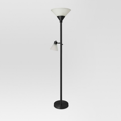 Mother Daughter Torchiere Floor Lamp Black With Glass Shade