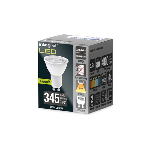 Gu10 a++ 2025, Integral LED GU10 BULB 400LM 3.6W 2700K NON DIMM 36 BEAM INTEGRAL 2025