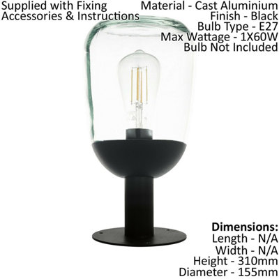 IP44 Outdoor Pedestal Light Black Aluminium Glass 60W E27 Bulb Wall Post