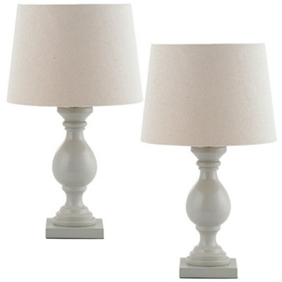 2 PACK Classic Wooden Table Lamp Taupe Off White Shade Pretty Bedside Light