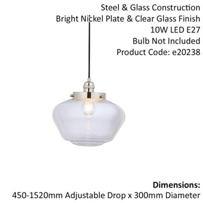 Polished Nickel Ceiling Pendant Light Clear Glass Shade Hanging