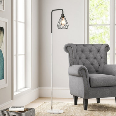 Tall black lampshade 2025, Industrial Black Metal Diamond Lampshade Floor Lamp Tall Pole 2025