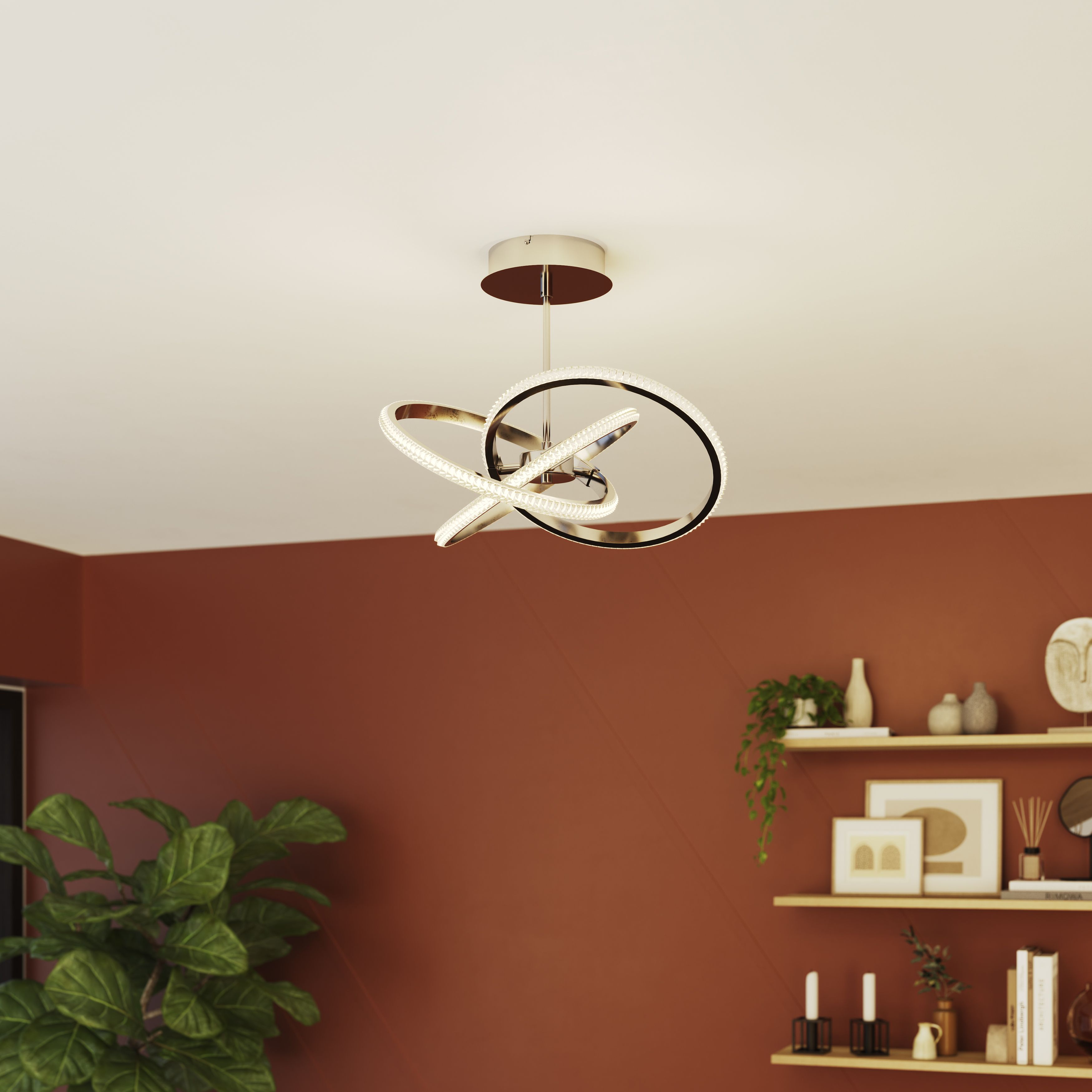 Led home ceiling 2025, GoodHome Round Beaded Metal plastic Chrome effect LED Entwined 2025