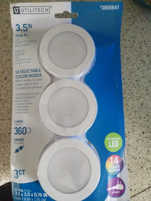 Utilitech RGBW 3 Pack 3.5 in Plug in LED Under Cabinet Puck Light