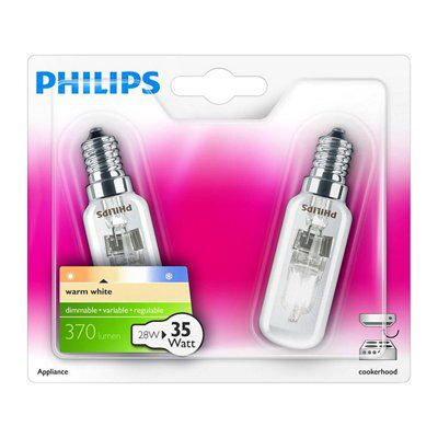Philips E14 28W Warm white Halogen Dimmable Cooker hood Light bulb Pack of 2