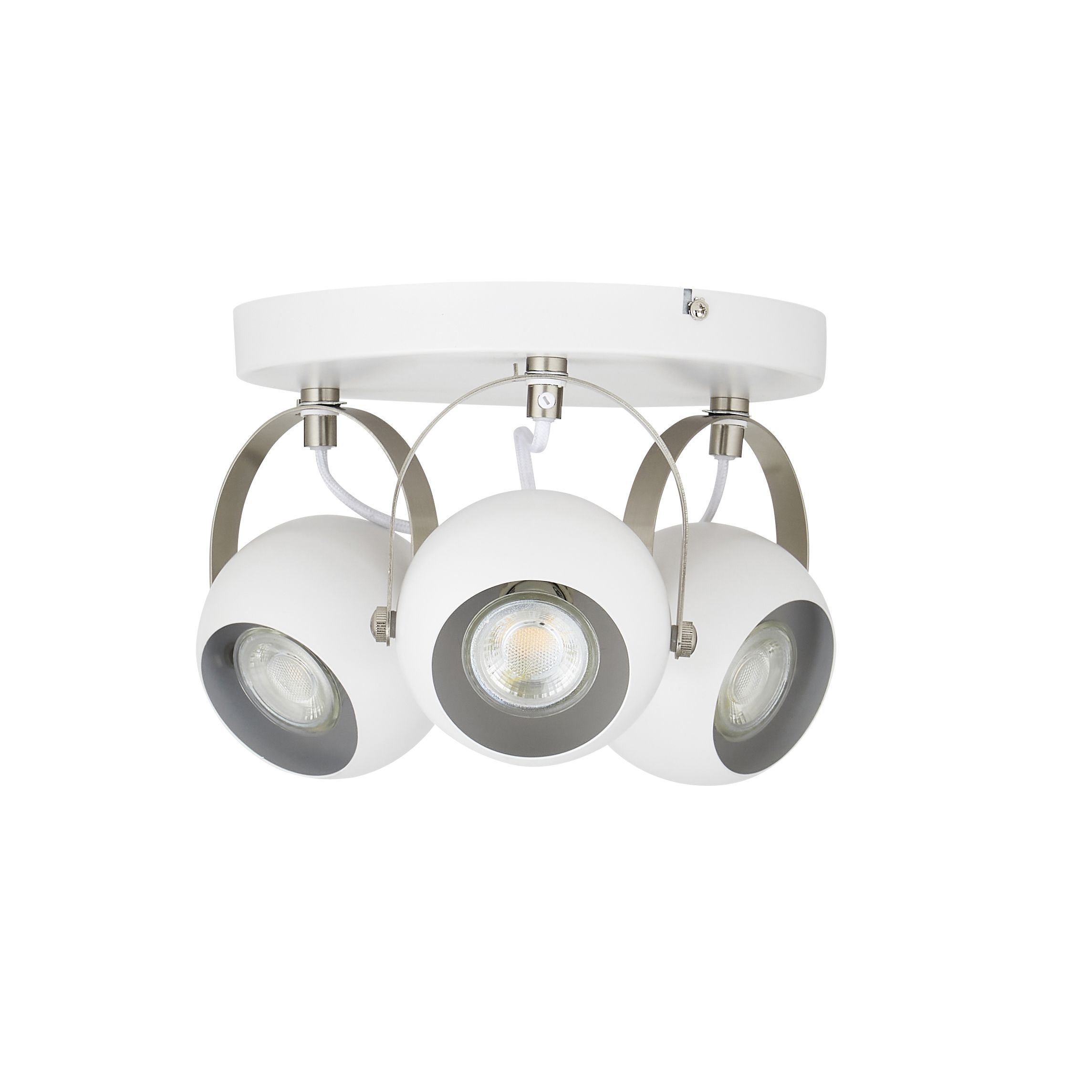 Azure Matt White Nickel effect Mains powered 3 lamp Spotlight