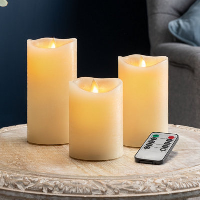 Flameless LED Candles Christmas Real Wax Flickering Flame Remote Control Set Of 3 Christow