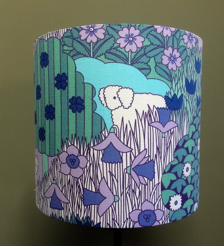 RETRO 70s lilac SHEEP MAY SAFELY Pat Albeck Vintage Fabric Lampshade option