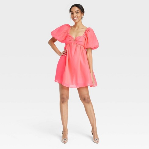 Women s Balloon Short Sleeve Organza Baby Doll Dress A New Day