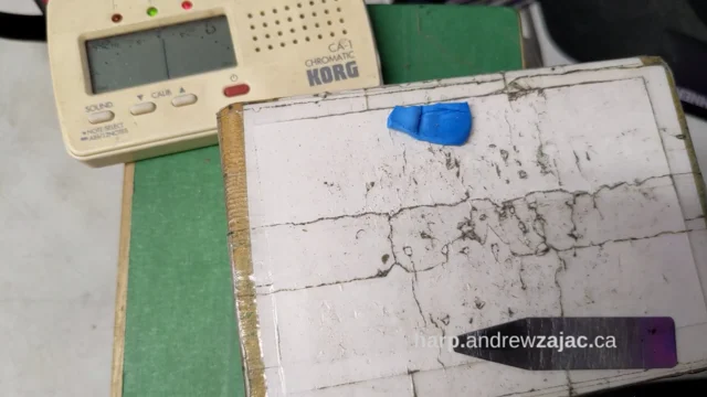 Tuning a harmonica reed down with BluTak