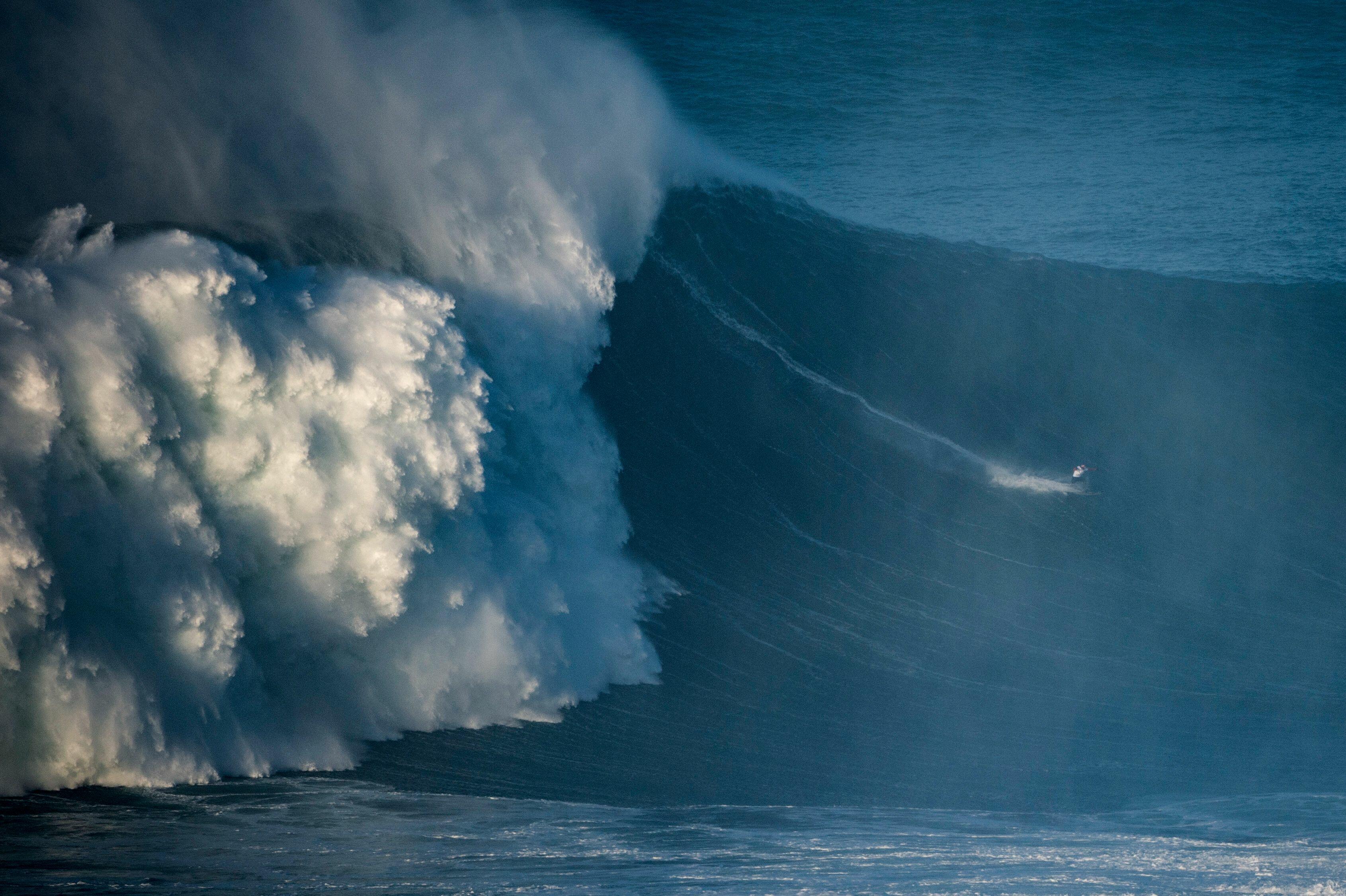 Watch a surfer take on a monster wave off the coast of Portugal