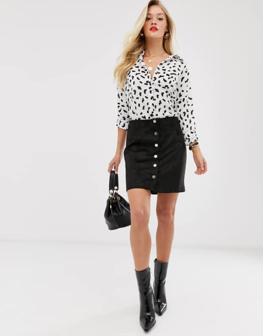Skirt Suede Faux Front Button Up Mini Skirt in Black