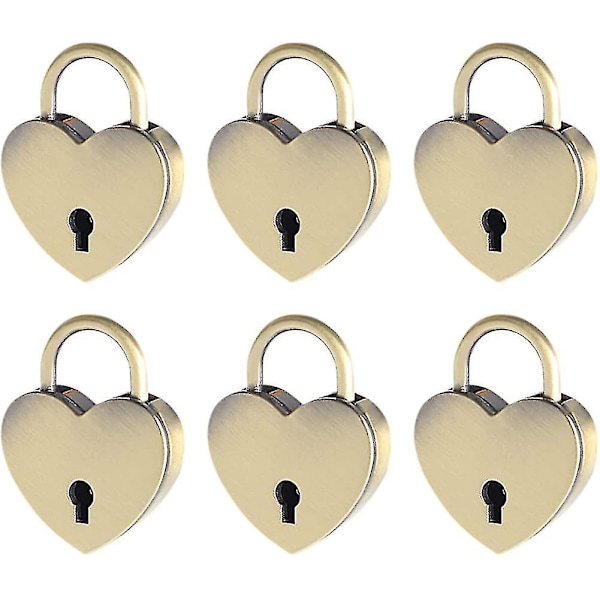 6 Pieces Small Key Lock Mini Heart Shaped Bronze Padlocks With